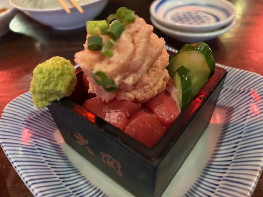マグロの赤身の上に、ネギトロがブリっとのせられてます。
