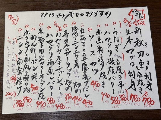 この日のオススメはこんな感じ。