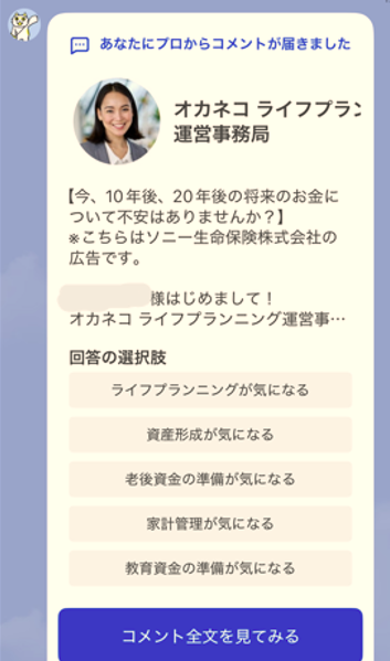 おおっ! 今度は、ライフプランを作ってもらうように仕向けてきてます。