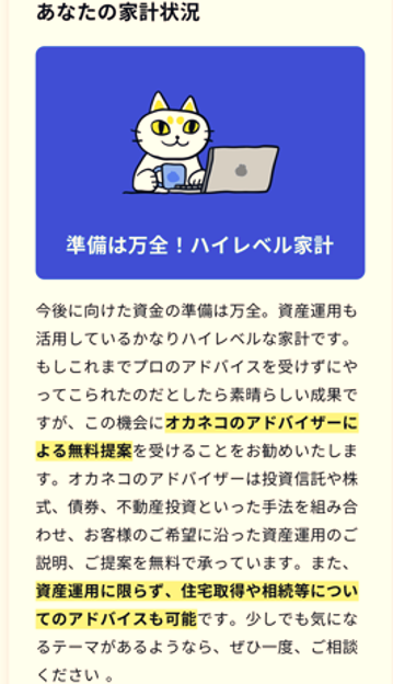なんと! 早速オカネコのアドバイザーが個別提案を作成中だとさ!