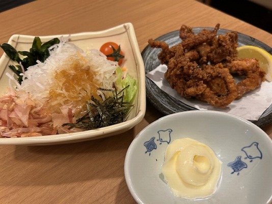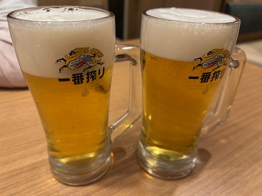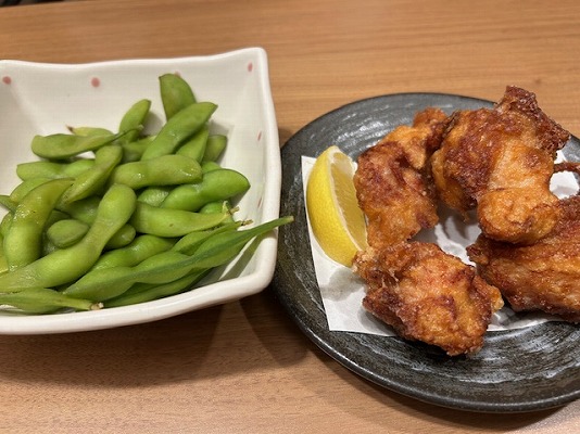 私は生ビールと枝豆に鶏のから揚げをチョイス