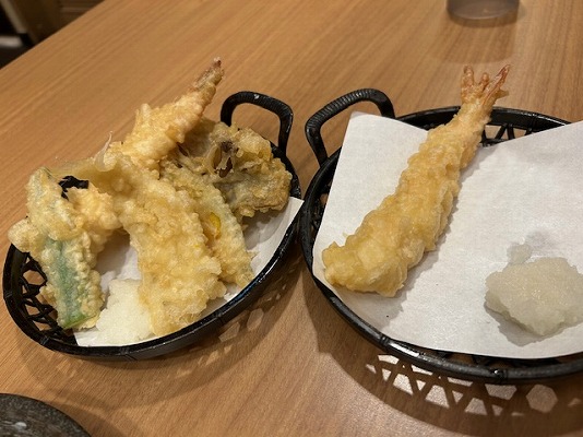 続いて頼んだのは、天ぷらとトロたくユッケ風