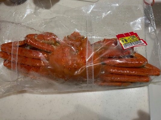今朝、近所のイオンに行ったら、早くも半額のズワイガニが有りました。