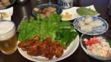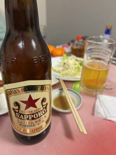おかずが多いので、生ビールの後に瓶ビール