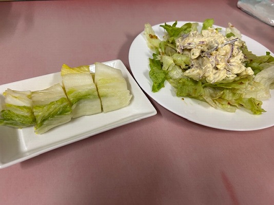 お通しは、白菜漬けとマカロニサラダ