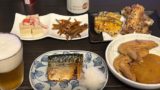 メニューはビールの横から、ホタテグラタン・タラの白子天ぷら・大学イモ・トマト・ナスガーリックピザ