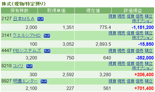 昨日のブログ書き込み後から含み益が、約2万円も減っちゃいました。