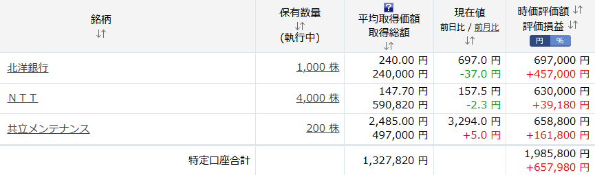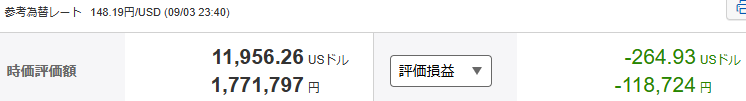 昨日は、含み損が約267万円でしたので、含み損が約12万3千円も減りました。