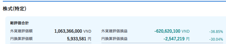 楽天証券の評価損益額合計は、米国株を合わせて約69万6千円。