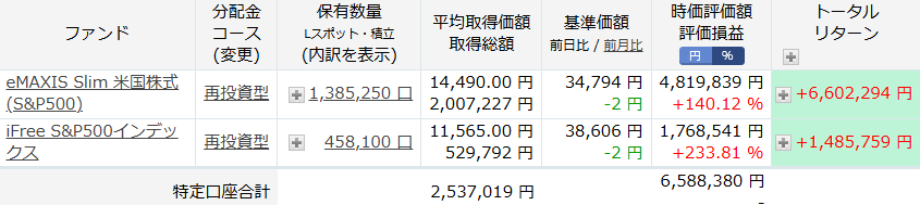 楽天証券の評価損益額合計は、米国株を合わせて約73万2千円。