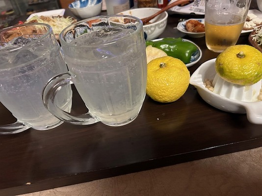 我が家産のユズを使った、生搾りユズサワーをいただきました。