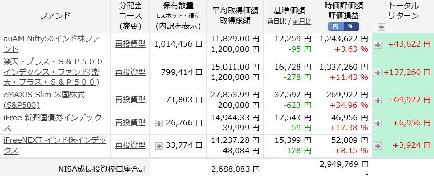 楽天証券で買ってる、投資信託を見てみましょう。