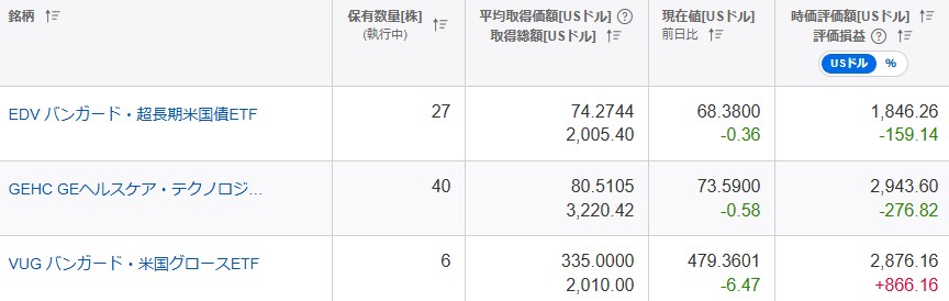 楽天証券の評価損益額合計は、米国株を合わせて約74万2千円。