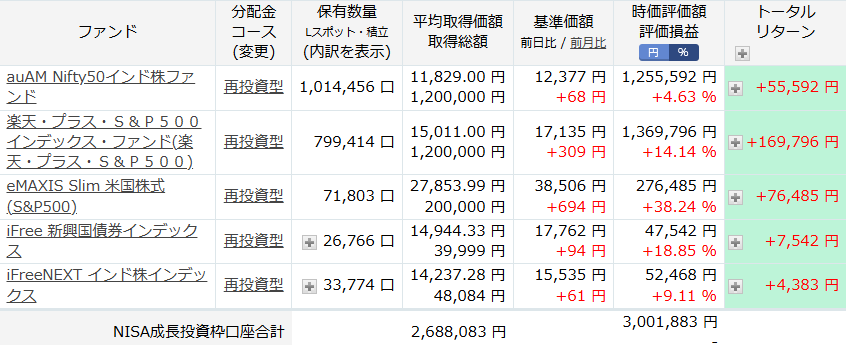 楽天証券で買ってる、投資信託を見てみましょう。