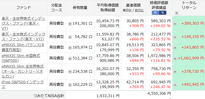 投資信託全てのトータルリターンは、12,274,163 円