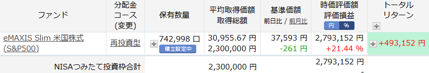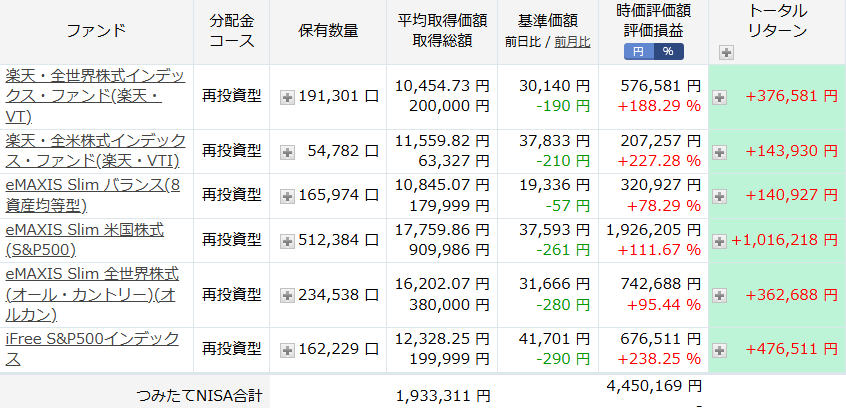 楽天証券の評価損益額合計は、米国株を合わせて約56万9千円。