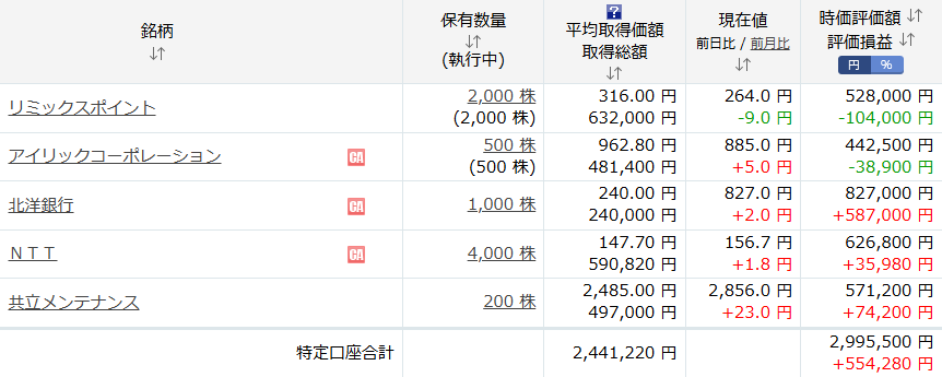 投資郎の保有株式はどうだったでしょうか?