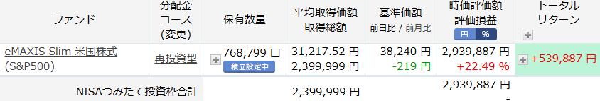 SBI証券での購入分も見てみましょう。