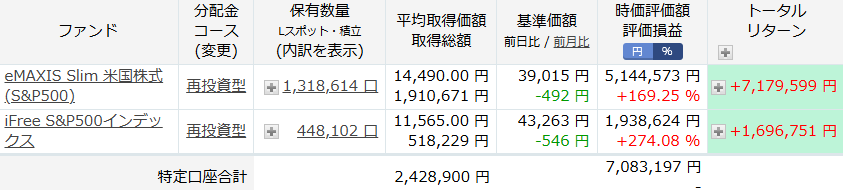 SBI証券での購入分も見てみましょう。