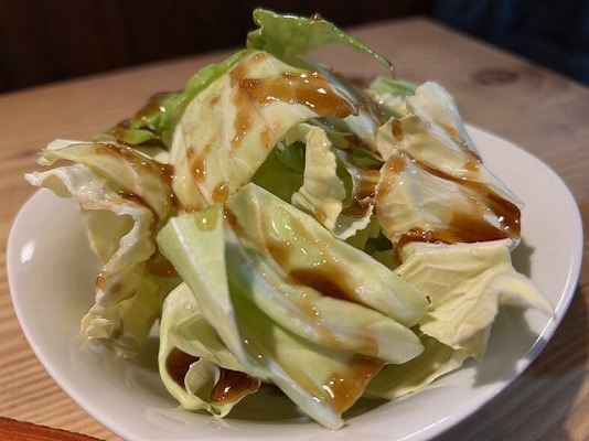 おつまみは、すぐに来るタレきゃべつ。
