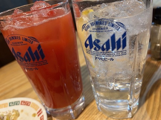 私が、レモンチューハイで妻は、トマトサワー