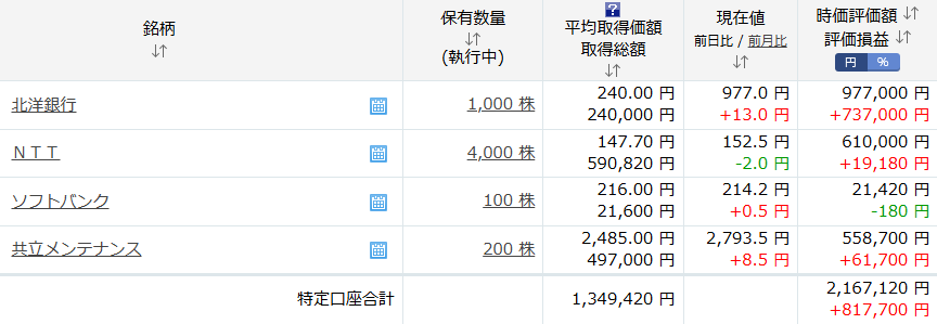 投資郎の保有株式はどうだったでしょうか?