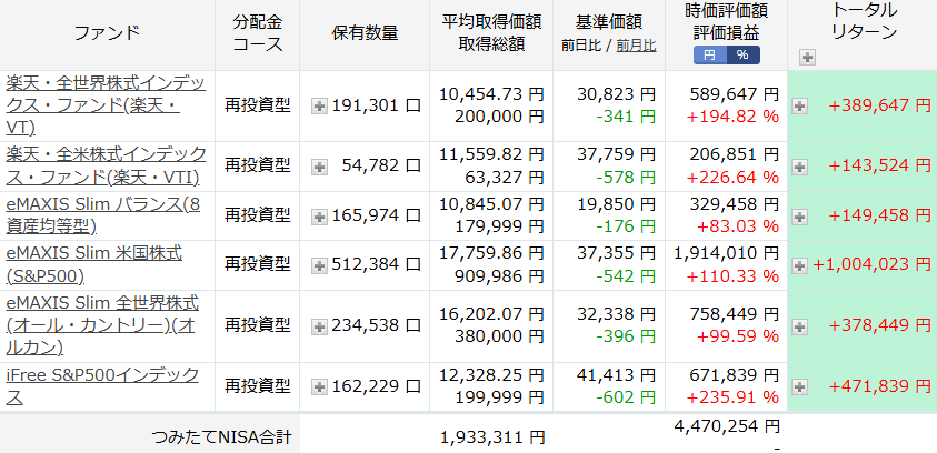 投資信託全てのトータルリターンは、11,560,587 円