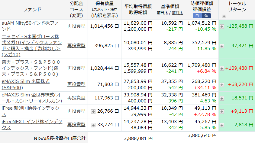 楽天証券で買ってる、投資信託を見てみましょう。