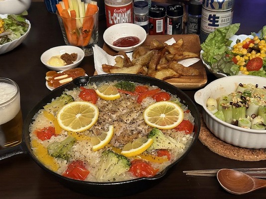 この前、すぺいん亭でパエリアをいただきましたが、今回は家で魚介じゃないパエリアを作ったようです。