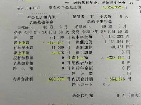 で、59歳になると日本年金機構から封書でねんきん定期便が送られてきて、その時の65歳からの受取額は、1,908,491円でしたので60歳2か月から貰うようにすれば147万円以下になるので、そうしようと思ってました。