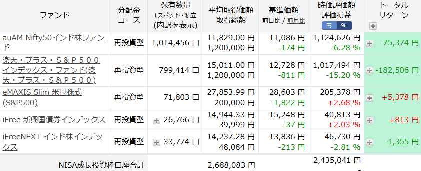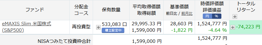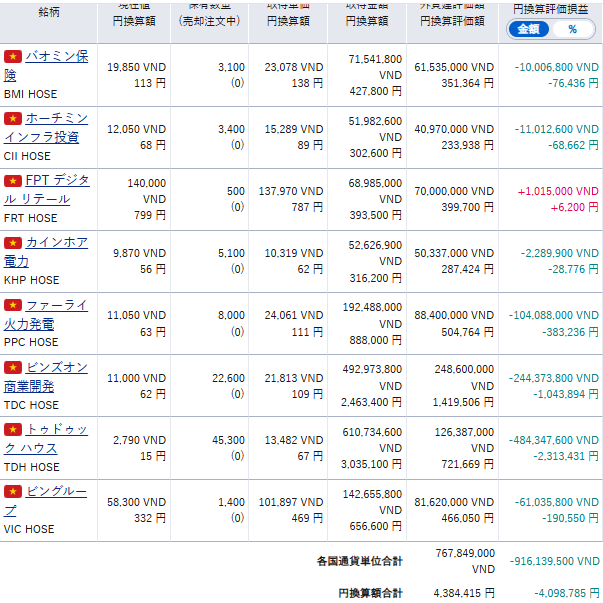楽天証券の評価損益額合計は、米国株を合わせて約-4万円。