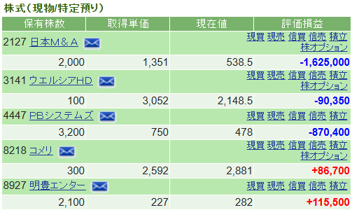 昨日から含み益が、約85万4千円も減っちゃいました。