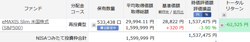 で、今日はすべて上げたので、トランプの関税発言からの暴落で投資全体では約64万円も下げてるって事ですな。