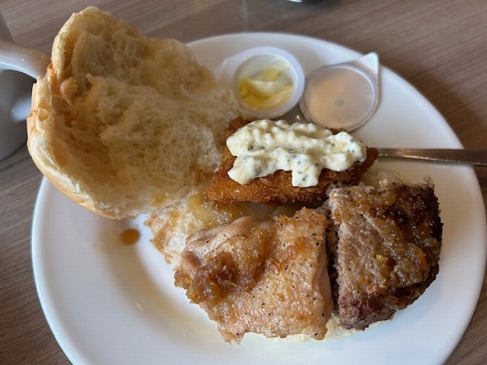 この後、おかわりでパンを持ってきてもらい、いつものようにバーガーづくり。