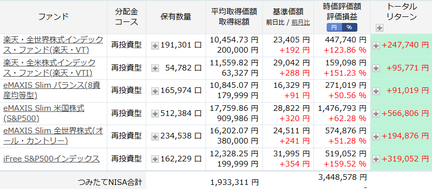 SBI証券での購入分も見てみましょう。