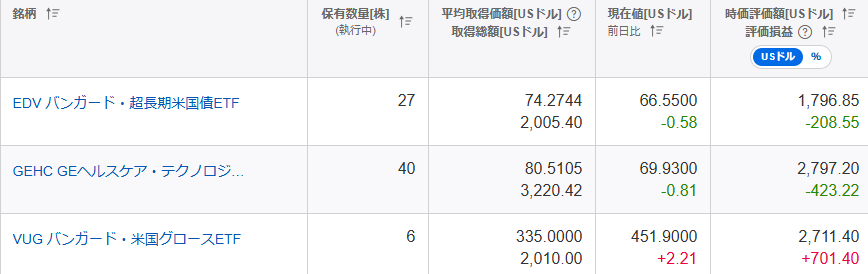 楽天証券の評価損益額合計は、米国株を合わせて約61万円。