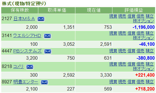 昨日のブログ書き込み後から含み益が、約2万5千円も減っちゃいました。