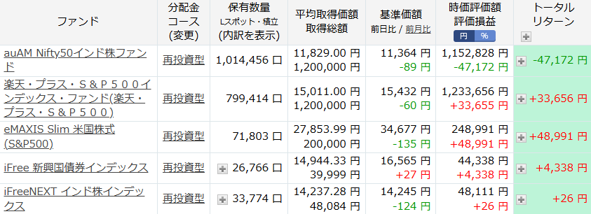 楽天証券で買ってる、投資信託を見てみましょう。