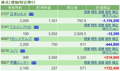 昨日から含み益が、約7万7千円も減っちゃいました。