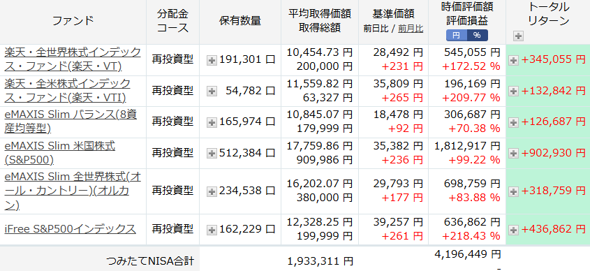 楽天証券で買ってる、投資信託を見てみましょう。
