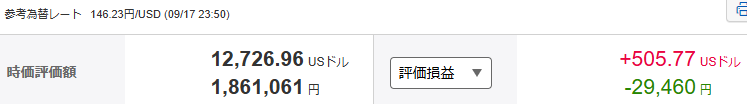楽天証券の評価損益額合計は、米国株を合わせて約83万4千円。