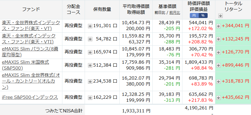 楽天証券で買ってる、投資信託を見てみましょう。