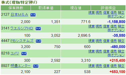 昨日は、含み損が約249万8千円でしたので、含み損が約23万2千円も減りました。