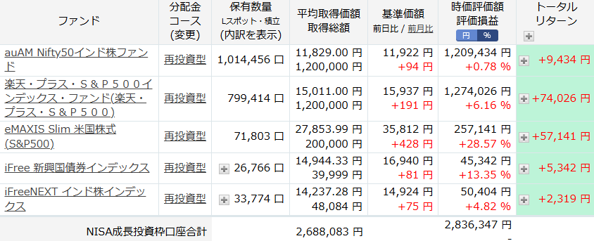 楽天証券の評価損益額合計は、米国株を合わせて約80万円。