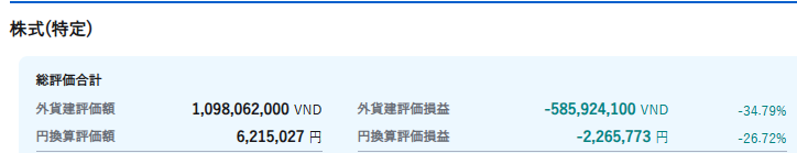 今日は、日本株はダメだったけど、投信とベトナム株がだいぶ上げてくれました!