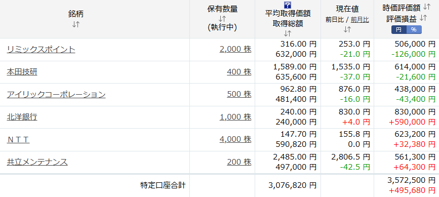 先週末は、含み損が約112万7千円でしたので、含み損が約12万6千円も増えてしまいました。