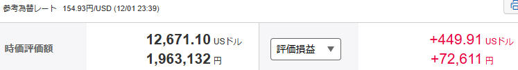 楽天証券の評価損益額合計は、米国株を合わせて約74万2千円。