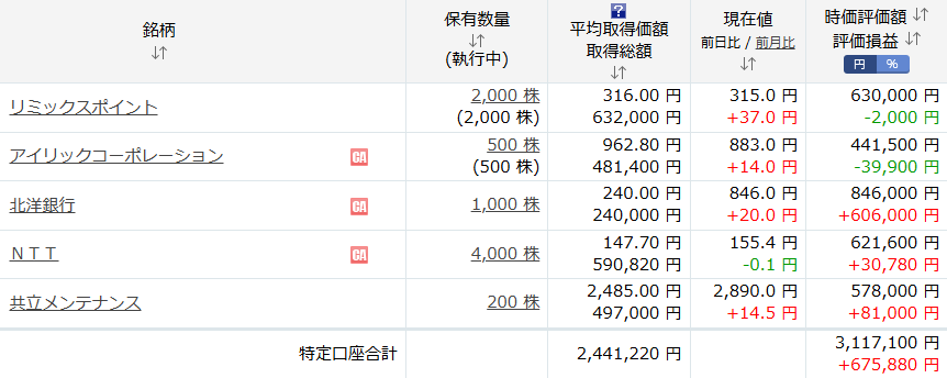 先週末のブログ書き込み後から含み益が、約8万8千円も増えました。
