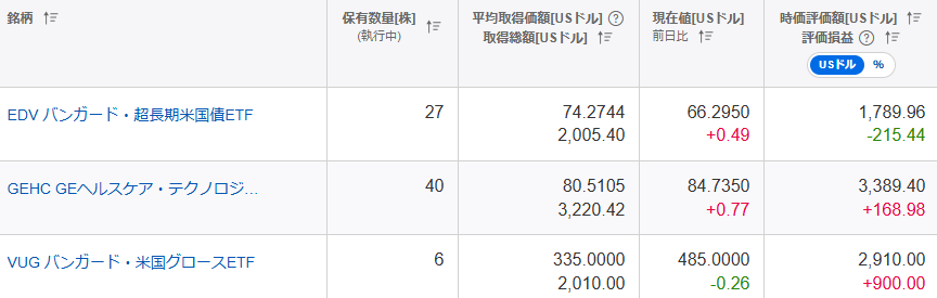 楽天証券の評価損益額合計は、米国株を合わせて約91万6千円。