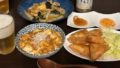 メニューはビールの横から、カニステーキ・カニ刺し・芋煮・チーズはんぺんバター焼き・厚揚げとナスの炒め物